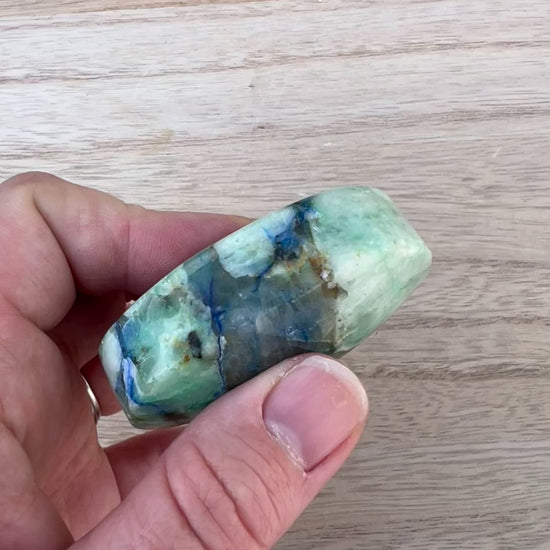Chrysocolla in Quartz Palm Stone E